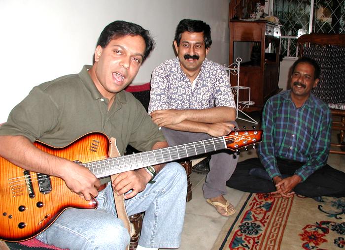 Noel takes a respite from the playing .. here's Shadwell Fernandes on the guitar