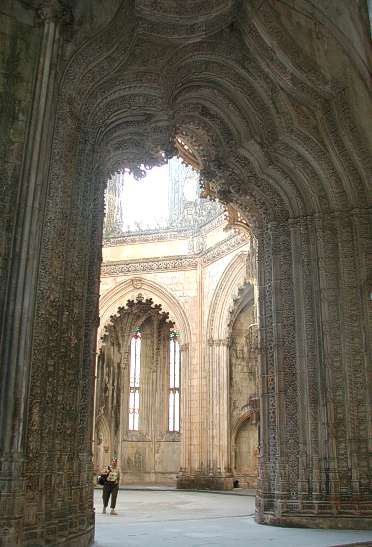 The entrance to the Unfinished Chapels in Batalha - to enter here, you have to leave the main building and re-enter through a door situated at the back of the monastery. 50 ft high and 25 ft wide, its portal is intricately decorated. The Manueline portal is one of the finest examples of its type in Portugal. |