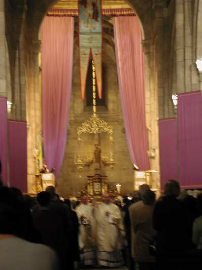 Mass was being said in Portuguese, and here are the priests spraying holy water on the congregation.