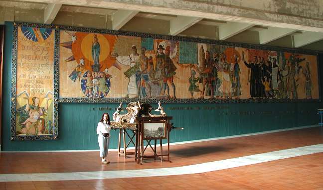 Underground, we found a very modern looking worship space - almost the size of 7 tennis courts! The walls were decorated with interesting tile paintings.