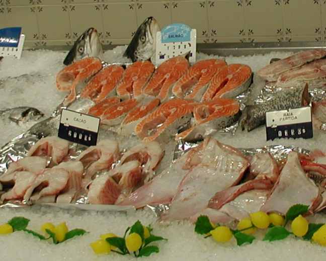 Portuguese cooking is not complicated or very refined. Its strength lies in its simplicity and the superb quality of its sea-food. Fish & shellfish are magnificent in Portugal. You have trout, salmon and lampreys in rivers. Sea fish include sardines, swordfish, monk-fish, sea bass, tuna, hake, sole, turbot, shark and lesser fish such as the stickleback and dogfish. Then there are shell fish, lobster, crab, prawns, octopus and squid. |