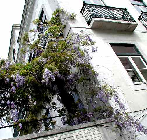 Beautiful wisteria tumbling down a whitewashed terrace