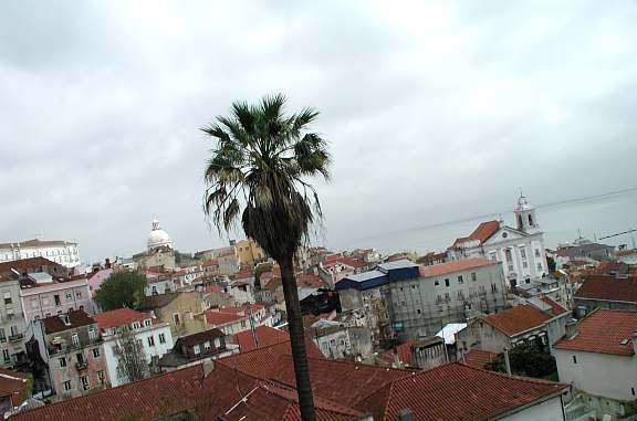 But first, we were drawn to a look-out point just across the tram stop, where we got a wonderful view of the Rio Tejo, and Alfama, the old quarter in Lisbon, a lovely jumble of little red-roofed houses tumbling down to the banks below.