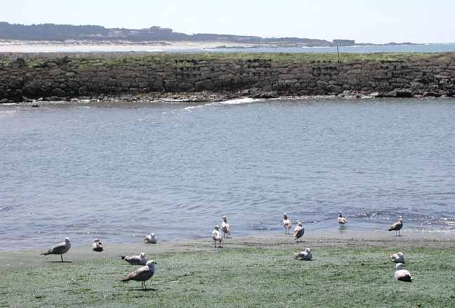 Sea gulls at the waters edge in