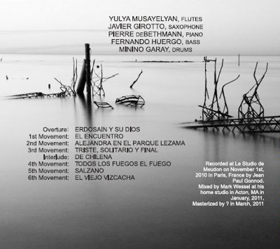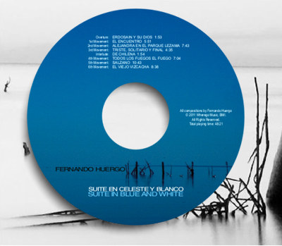 6-panel CD layout created for bassist and composer Fernando Huergo's CD 'Suite en Celeste y Blanco'.